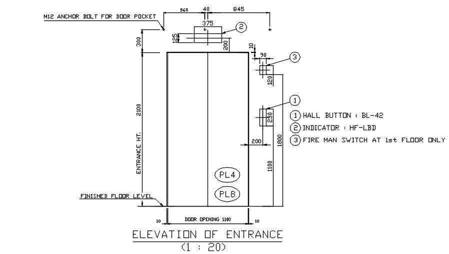 Entrance door Elevation and the sectional design are given in this AutoCAD DWG Drawing File. Download the AutoCAD drawing file.