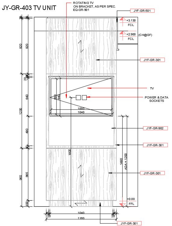 Tv unit detail drawing presented in this cad drawing file. power and data sockets with rotational tv. dimensions and naming detail also mentioned in this AutoCAD file. this can be used for interior and architecture drawing files. Download this 2d AutoCAD drawing file.