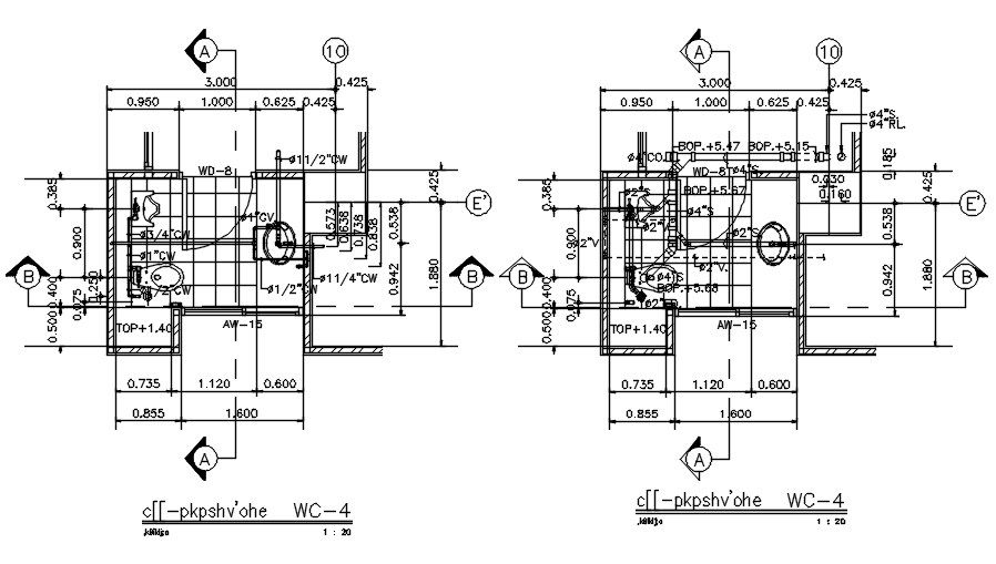 The small water closet typical section details are given in this AutoCAD DWG drawing.Download the AutoCAD 2D DWG file.