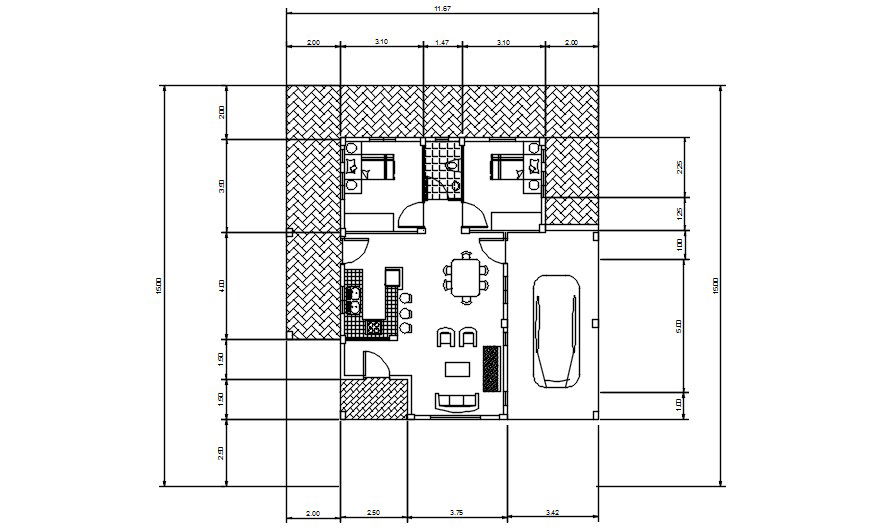 Floor plan detail presented in this AutoCAD drawing file. the living room area, kitchen, and dining area with two-bedroom. also given services and utilities detail drawing.carparking with dimensions detail given in it. this can be used by architects and interiors. Download the AutoCAD 2d drawing DWG file now.