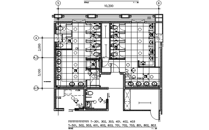 The floor plan drawing of the toilet with tiles detail is given in this AutoCAD Drawing. Sectional details are clearly given in this drawing file. The public toilet floor plan diagram with washbasin and western toilet is given in this DWG file. Download the AutoCAD 2D DWG file. Thank you so much for downloading the DWG file from our website.
