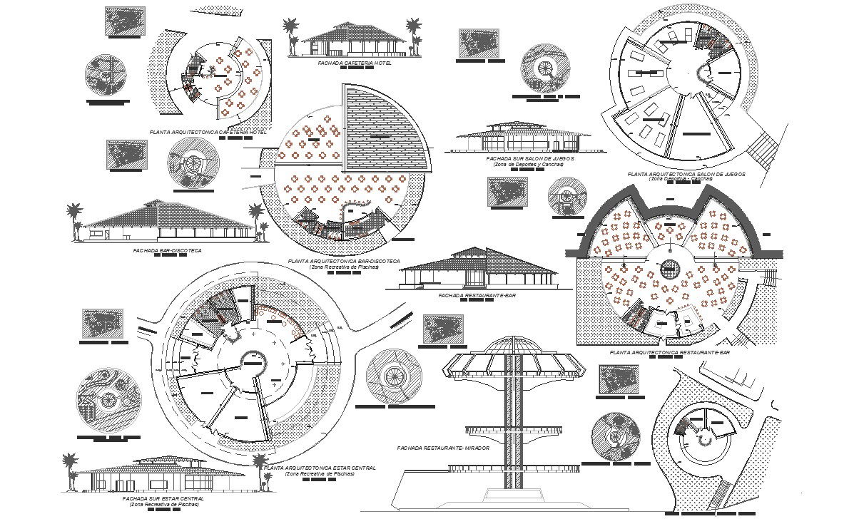Restaurant design and detail in cad dwg files include all architecture and interiors detail.