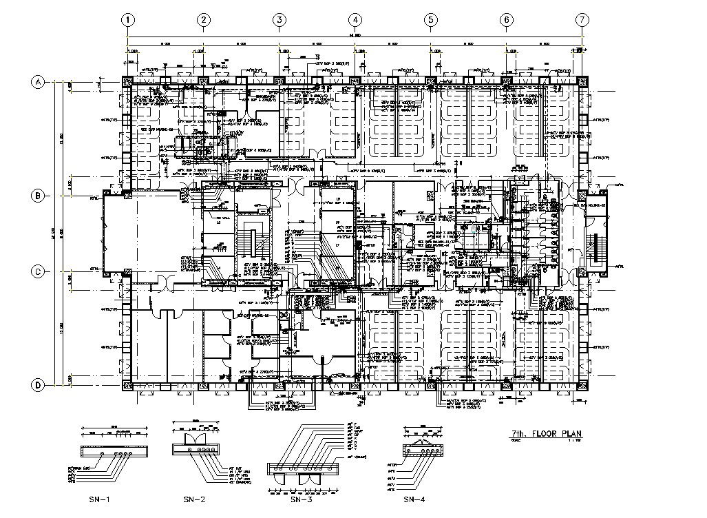 The basement plan of a hotel is given in this drawing. this detail consists of a layout plan of the hotel basement plan with services and utilities detail with parking area and dimensions, naming detail. are given also. this can be used for architectural and working drawings. Thank you for downloading this 2d AutoCAD drawing file.