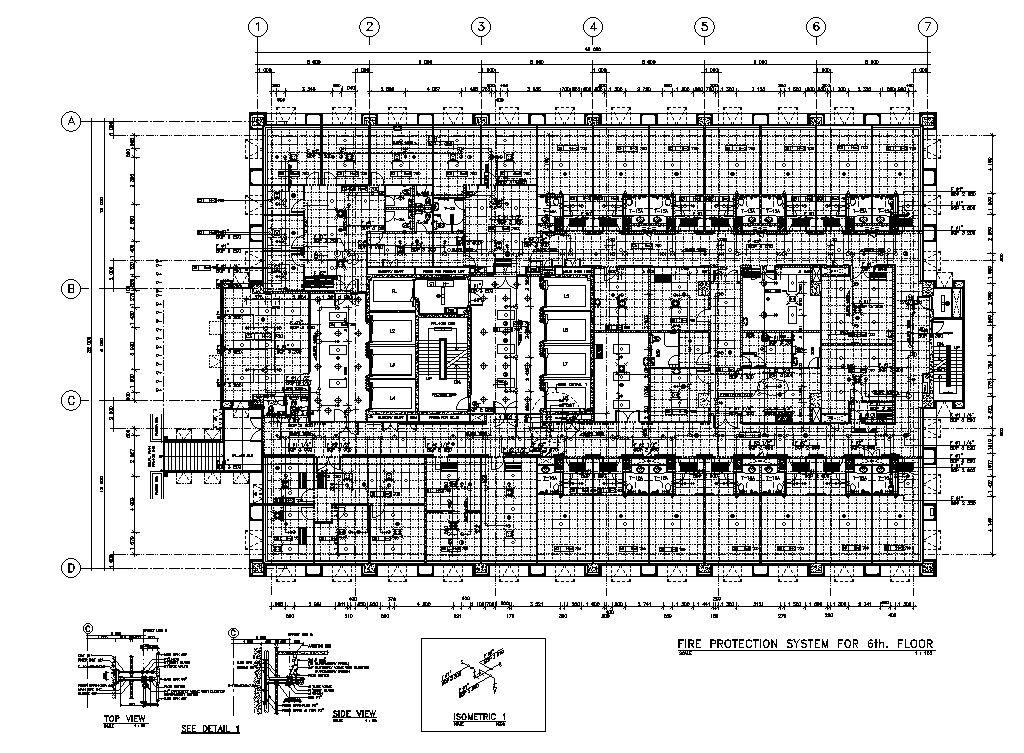 The Sixth-floor of the basement fire protection system plan given in this cad drawing file. Download the AutoCAD DWG file.