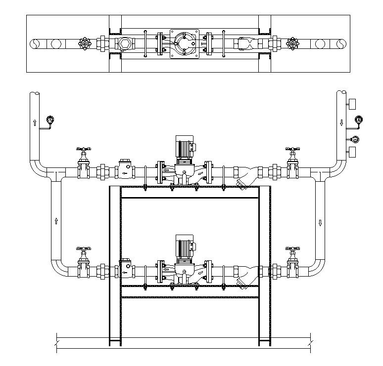 The boiler and pump room elevation detail drawing in this file. this drawing made by a 1:100 scale. this drawing consists of dimensions detail and section detail of pipe joinery with naming detail also. this can be used by architects and civil engineers. Download the AutoCAD DWG file.