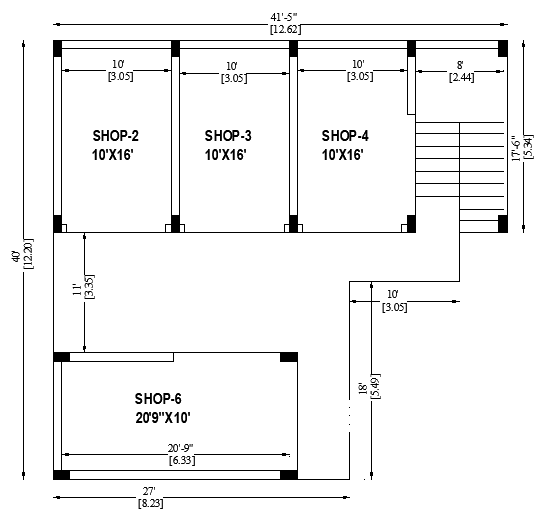 41' X 40' Commercial shop building is given in this AutoCAD DWG file.Download 2D Autocad Drawing DWG and PDF file.