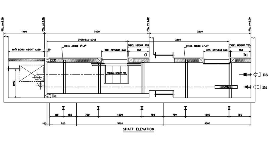 Shaft elevation and the section details are given in this AutoCAD 2D DWG drawing. Sectional details are clearly given in this drawing file. steel angle, room height , overhead, table height, and section details are given in this DWG file. This drawing file is useful for civil and structural engineers. Download the AutoCAD 2D DWG file. Thank you so much for downloading the DWG file from the cadbull website.
