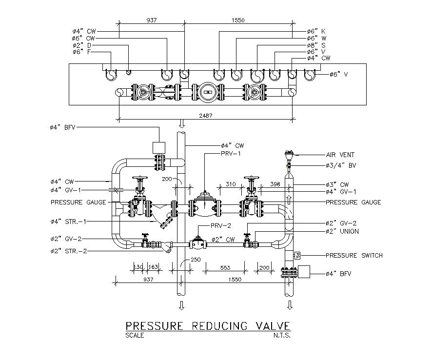 This drawing presents pressure reducing valve detail AutoCAD file. In this drawing machinery details with not to scale drawn. dimension and naming detail also presented in this AutoCAD drawing file. this can be used by architects and machinery detail. Download this 2d AutoCAD drawing file.