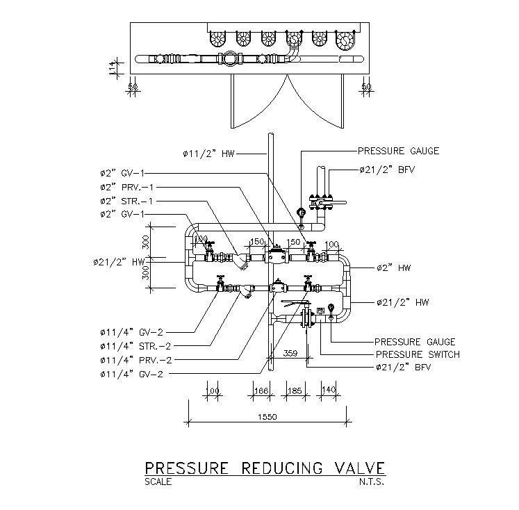 Pressure reducing valve detail is given in this AutoCAD file. Download this 2d AutoCAD drawing file.