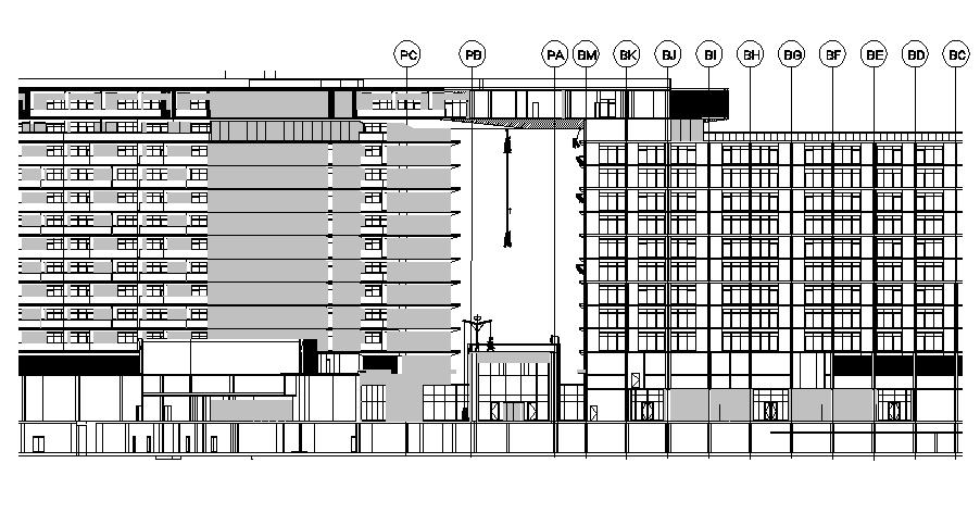 Architectural drawing of High rise commercial office building typical section and side elevation details are given in this AutoCAD DWG drawing.Download now.