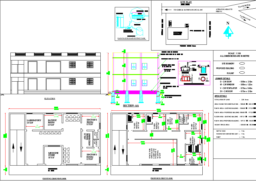 A hospital detail drawing is given in this AutoCAD drawing file. this drawing made by a 1:100 scale. this elevation consists of door window detail and r.c.c. slab detail. dimensions are given in this file. this can be used by architects and architecture students. Download this 2d AutoCAD drawing file.