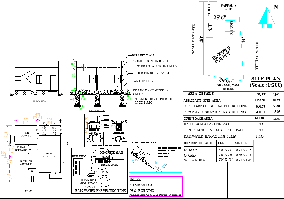 Working drawing of residence project specified in this AutoCAD drawing file. this site plan stated by 1:200 scale with sizes detail and area detail given in it. this can be used by architects and architects students. Download this 2d AutoCAD drawing file.