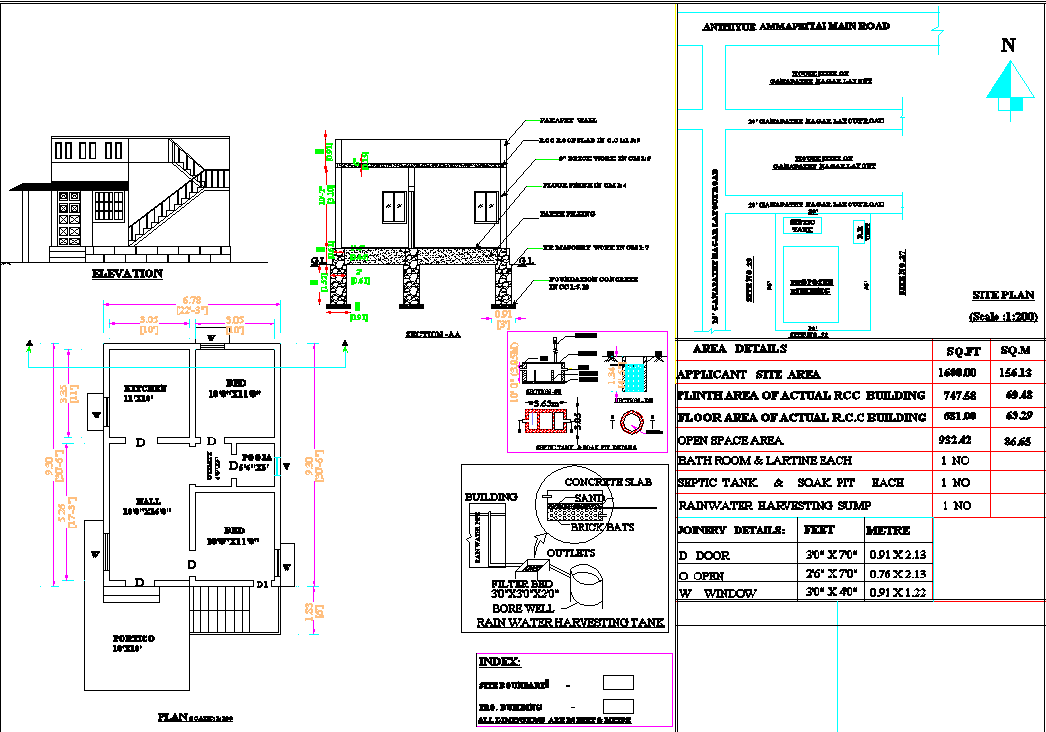 The residence project working drawing stated in this AutoCAD drawing file. this site plan stated by 1:200 scale with sizes detail and area detail given in this file. this can be used by architects and architects students. Download this 2d AutoCAD drawing file.