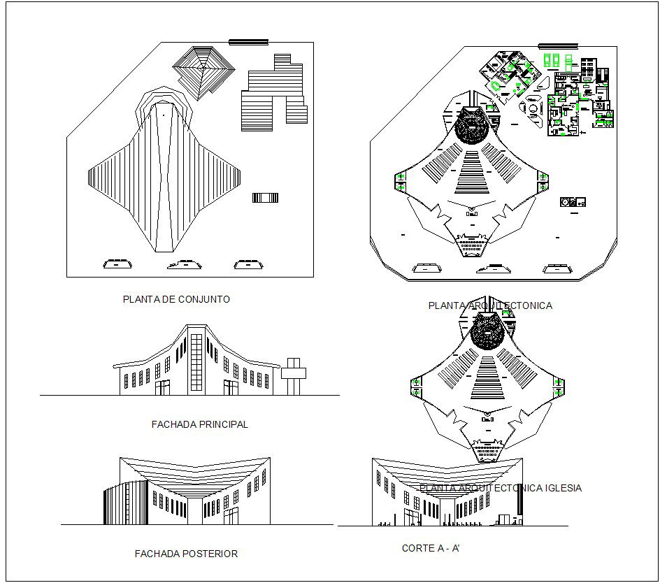Church cad drawing inlcude presentaions drawing, working plan, sections, all side elevations and all detail of architecture church drawing.