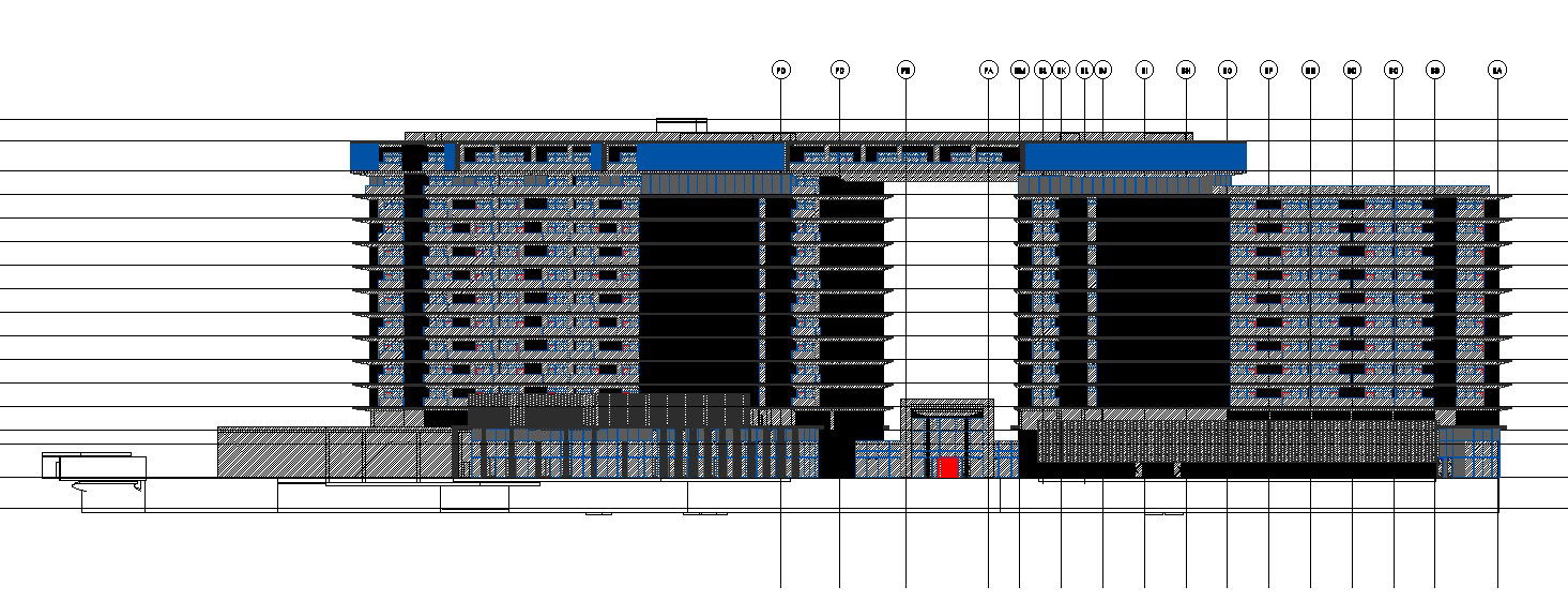 The commercial building stated front section detail in this drawing which is consists of the basement, ground floor is double height. you will have a section detailing tenth storied residential building. this can be used for architecture and planning designers. download this 2d AutoCAD drawing detail.