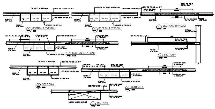 The typical reinforcement plan of the beam section details is given in this AutoCAD DWG drawing. Download the AutoCAD 2D DWG file.
