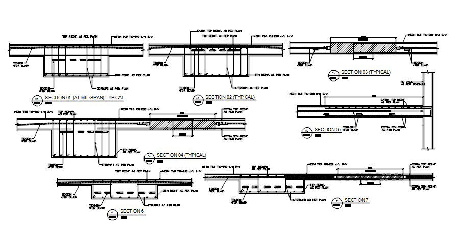 Midspan typical beam section details are given in this AutoCAD DWG drawing.Download the AutoCAD 2D DWG file.