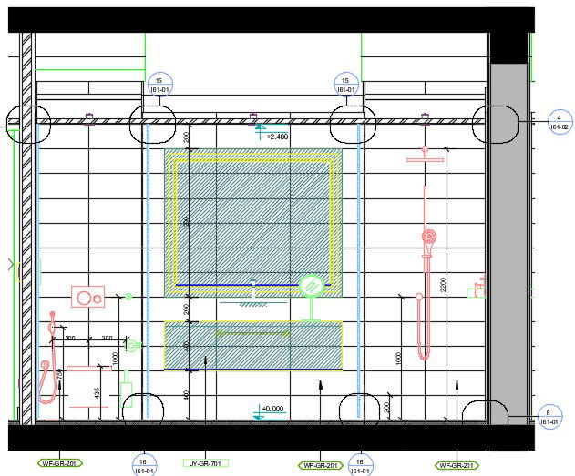 Front elevation detail of bathroom stated int his AutoCAD drawing file. Download this 2d AutoCAD drawing file.