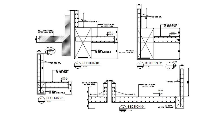 Rc Reinforcement structural section details are given in this AutoCAD DWG drawing. Sectional details are clearly given in this drawing file. RC reinforcement design, dimension, and section details are given in this DWG file. This drawing file is very useful for civil engineers. Download the AutoCAD 2D DWG file. Thank you so much for downloading DWG file from our website