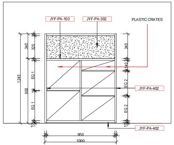 Front elevation of the crocker unit specified in this AutoCAD drawing file. this drawing consists of one partition in its .dimensions and material code is given in this cad file. this can be used by architects and designers. Download this 2d AutoCAD drawing file.