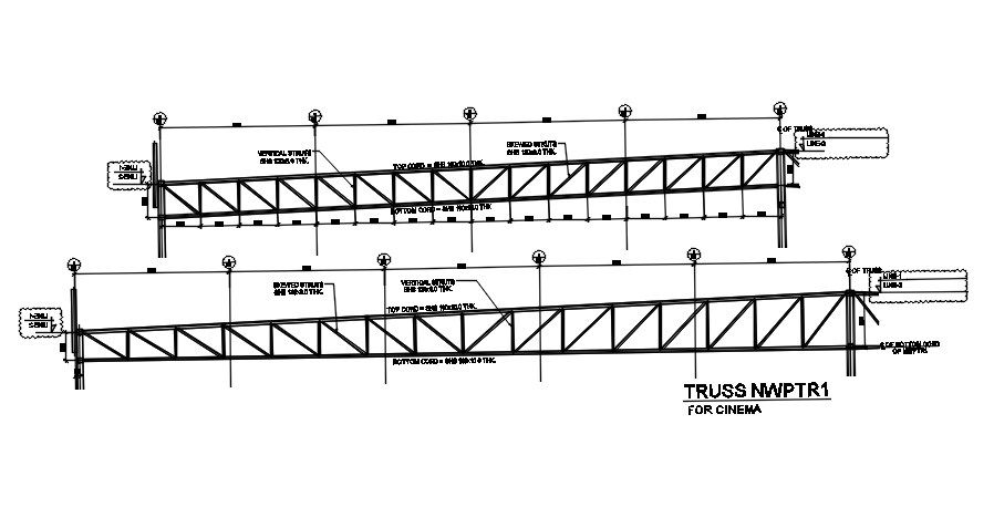 Truss NWPTR1 Section details are given in this 2D AutoCAD DWG drawing. Side elevation, vertical struts, top and bottom cord, dimensions, and Sectional details are clearly given in this drawing file. section details are given in this DWG file. Download the AutoCAD 2D DWG file. Thank you so much for downloading the DWG file from the cadbull website.
