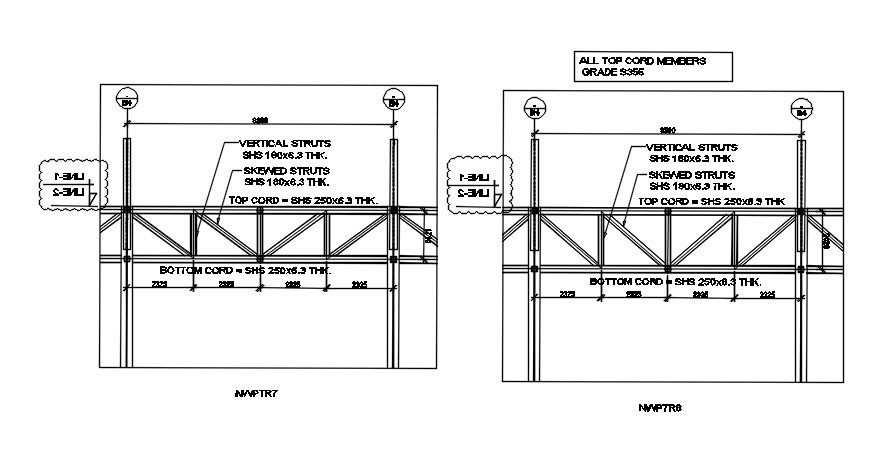 cross-section of the Truss details are given in this 2D AutoCAD DWG drawing. Side elevation, vertical struts, top cord members grade, skewed struts, top and bottom cord, dimensions, and Sectional details are clearly given in this drawing file. section details are given in this DWG file. Download the AutoCAD 2D DWG file. Thank you so much for downloading the DWG file from the cadbull website.