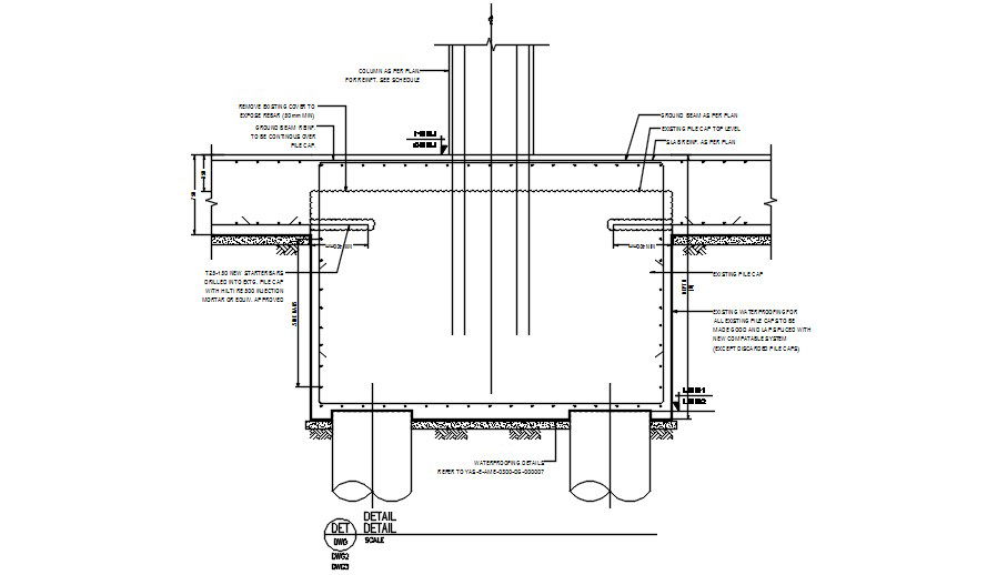 column and reinforcement typical Section details are given in this 2D AutoCAD DWG drawing. waterproofing protection board, Existing pile cap details , existing waterproof, and Sectional details are clearly given in this drawing file. section details are given in this DWG file. Download the free AutoCAD 2D DWG file. Thank you so much for downloading the DWG file from the cadbull website.