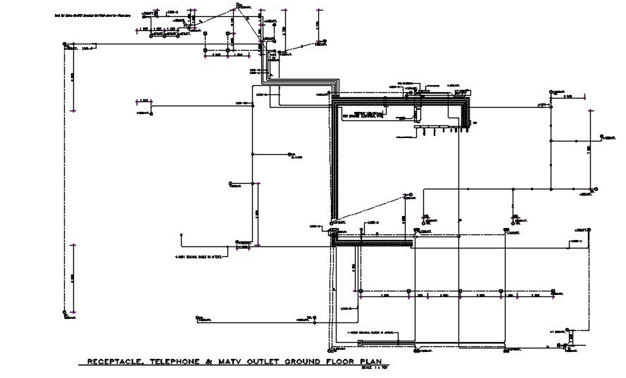 Ground Floor section details of Receptacle, Telephone, and MA tv outlet diagram are given in this AutoCAD DWG drawing.Download the free AutoCAD file.