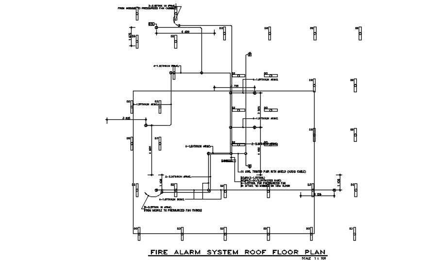 Fire Alarm system Roof floor plan diagrams are provided in this 2D CAD DWG drawing. Download the AutoCAD 2D DWG file.