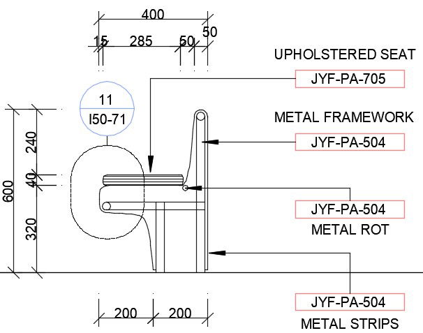 Section detail of Sitting for public park presented in this cad drawing file. this file consists of an upholstered seat, metal framework, metal rot, metal strips with side elevation of sitting exteriors.this can be used by architects and engineers.dimensions also presented in this file. Download this 2d AutoCAD drawing file.