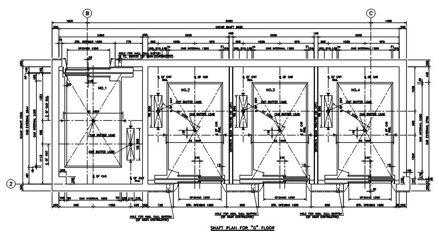 Shaft plan section details are provided in this 2D CAD DWG drawing. Typical Sectional details are clearly given in this drawing file. The hole for the hall call button, cwt buffer load, car buffer load, car rail, and section details are given in this DWG file. This 2d drawing is useful for civil engineers and architects. Download the AutoCAD 2D DWG file. Thank you so much for downloading the DWG file from our website.