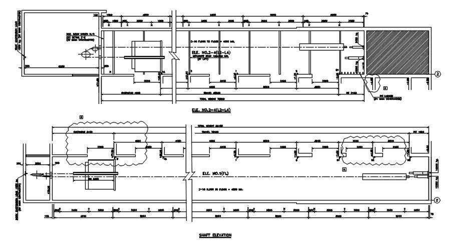 Shaft Elevation details are provided in this 2D CAD DWG drawing. Download the free AutoCAD 2D DWG file.