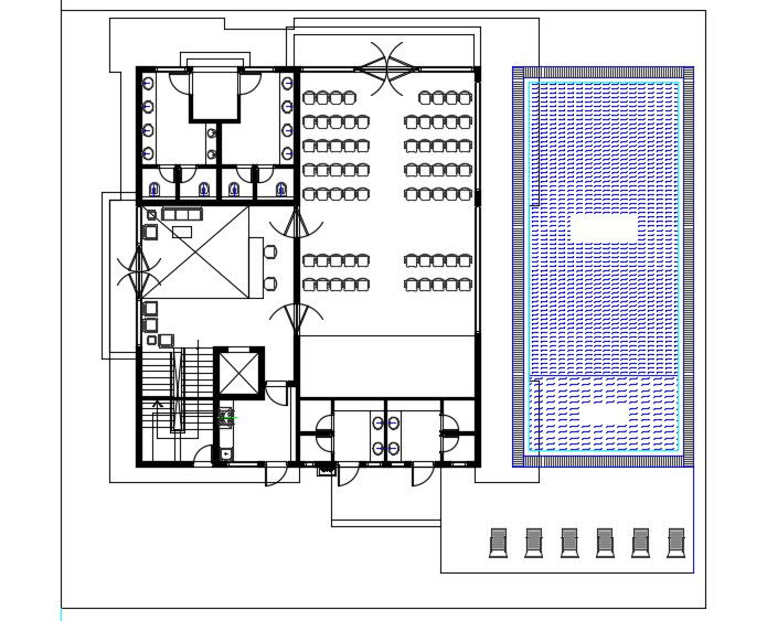 The swimming pool sports center layout plan CAD drawing which consist swimming pool, coaching hall, bathrooms, and reception area with all furniture layout design. Download the AutoCAD 2D DWG file. Thank you so much for downloading DWG file from our website.
