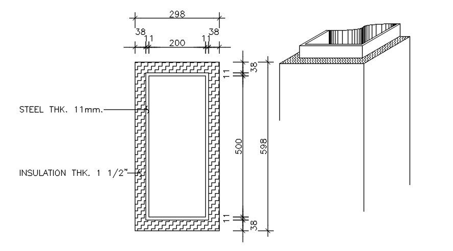 Steel and insulation section and dimension details are given in this 2D AutoCAD DWG drawing. Typical Sectional details are clearly given in this drawing file. steel thickness and insulation thickness and section details are given in this DWG file. This 2d drawing is useful for civil engineers and architects. Download the AutoCAD 2D DWG file. Thank you so much for downloading the DWG file from our website.