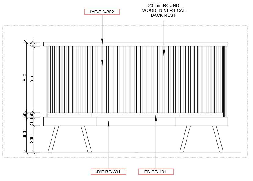 Side elevation detail of the counter table is provided in this AutoCAD drawing file. 20mm round wooden verticle backrest with back booth fixed to planter detail presented. dimensions and naming detail is also given in this cad drawing file. this can be used by architects and engineers. Download this 2d Autocad drawing file.