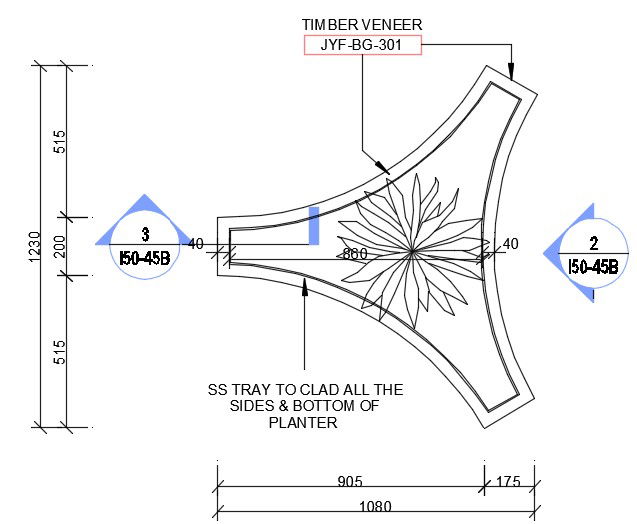 The planter detail top plan is given in this AutoCAD drawing file. ss tray to clad all the sides and bottom of planter detail given in it. dimensions and naming detail is also given in this cad drawing file. this can be used by architects and engineers. Download this 2d Autocad drawing file.