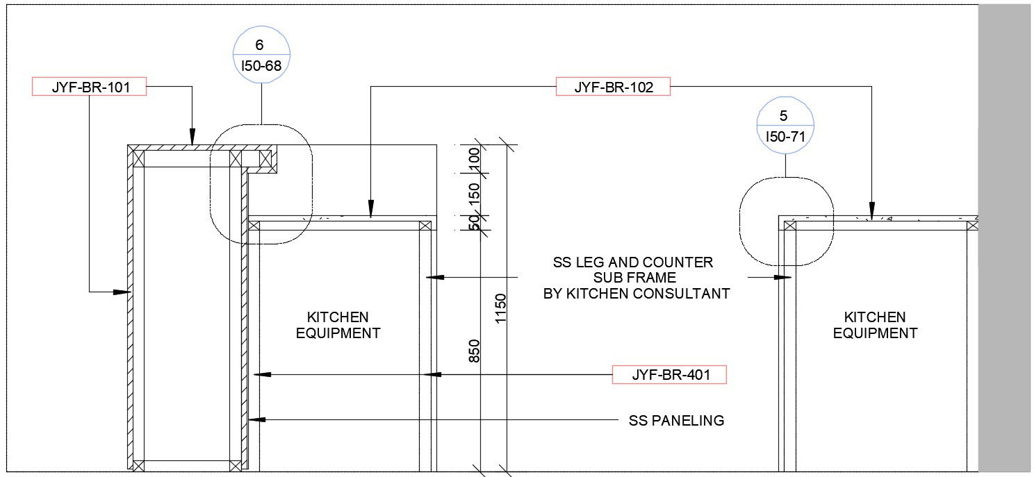 Side section detail of the kitchen platform and breakfast table given in this file. this file consists of and ss leg and counters subframe by kitchen consultant and ss paneling. dimensions and naming detail is also given in this cad drawing file. this can be used by architects and engineers. Download this 2d Autocad drawing file.