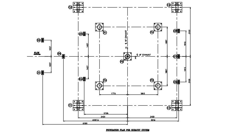 Foundation plan for exhaust system specified in this cad drawing file. Download this 2d Autocad drawing file.