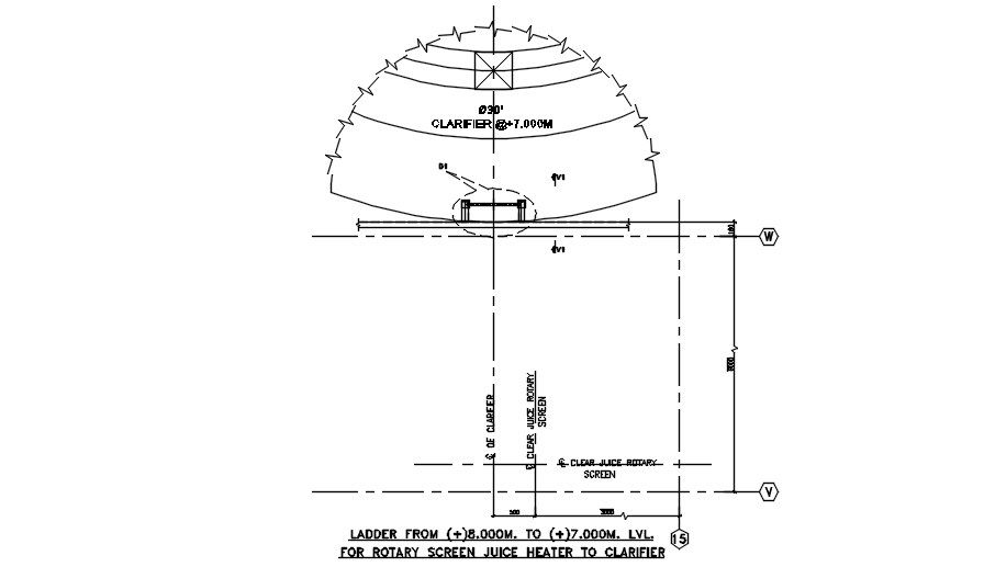 Clarifier Ladder's typical section details are given in this 2D AutoCAD DWG drawing. Sectional details are clearly given in this drawing file. Clarifier, rotary screen, juice heater, dimension drawing, and section details are given in this DWG file. This Cad drawing file is very useful for civil engineers and structural engineers. Download the AutoCAD 2D DWG file. Thank you so much for downloading the DWG file from the cadbull website.