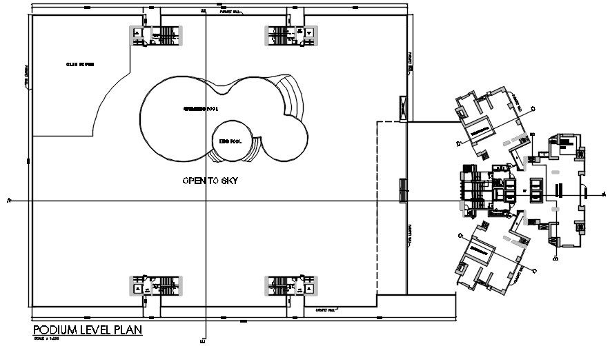The podium level plan stated in this cad drawing file. Download this 2d Autocad drawing file.