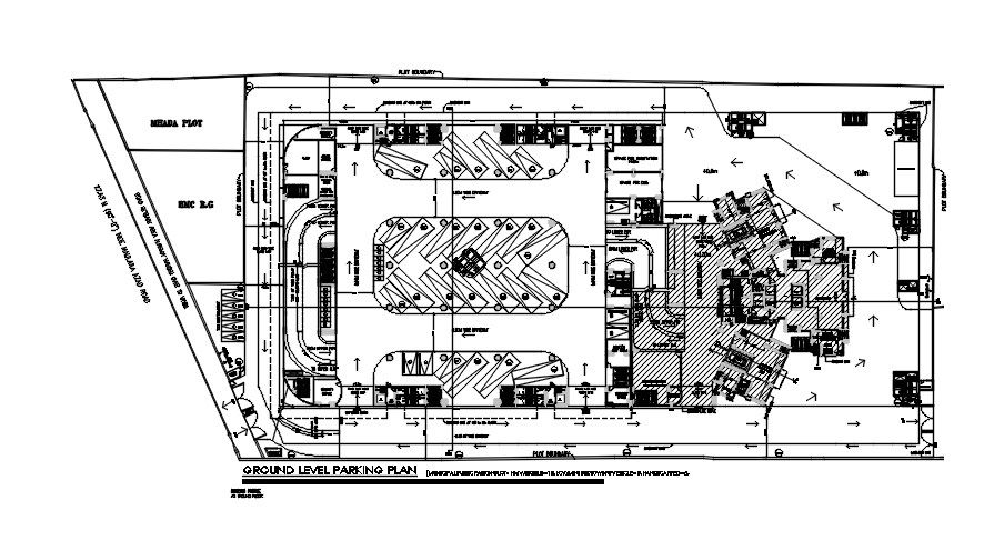 Parking plan on the ground floor presented in this cad drawing file. drawing made by 1:200 scale. construction detail with dimensions and naming detail is also given in this cad drawing file. this can be used by architects and engineers. Download this 2d Autocad drawing file.
