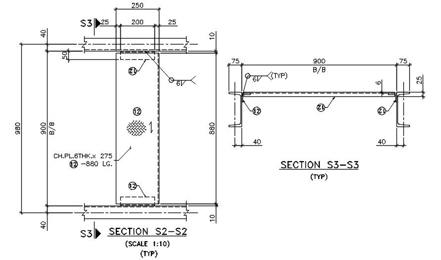 Filter and beam section detailed plans are given in this 2D AutoCAD DWG drawing. Sectional details are clearly given in this drawing file. Bolts, holes, and section details are given in this DWG file. This Cad drawing file is very useful for civil engineers and structural engineers. Download the AutoCAD 2D DWG file. Thank you so much for downloading the DWG file from the cadbull website.