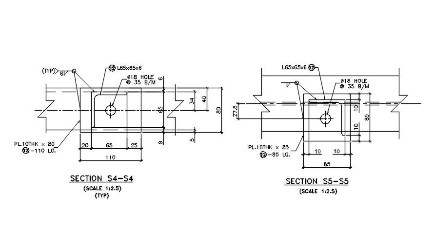 Typical angle section plans are given in this AutoCAD DWG drawing. Sectional details are clearly given in this drawing file. Bolts, holes, dimensions, and section details are given in this DWG file. This Cad drawing file is very useful for civil engineers and structural engineers. Download the AutoCAD 2D DWG file. Thank you so much for downloading the DWG file from the cadbull website.