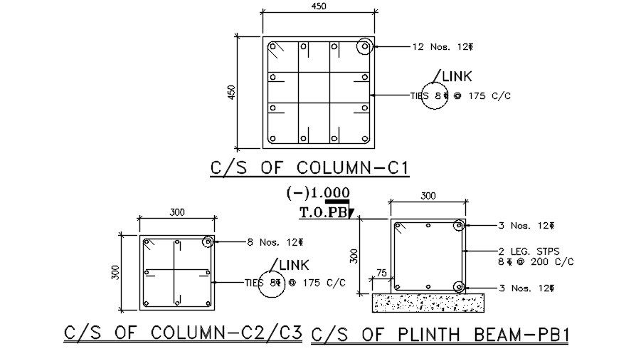 Column detail drawing stated in this drawing file. 450 x 450, 300 x 300 size of column detail and plinth beam detail also given in this drawing file. dimensions and naming detail also presented in the file. this can be used by architects and engineers. Download this 2d AutoCAD drawing file.