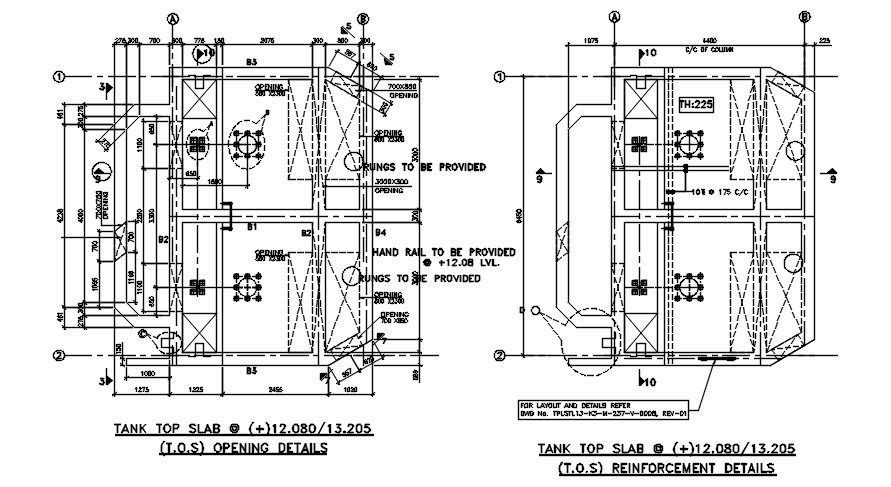 Tank top slab opening details specified in this AutoCAD drawing file. Download this 2d AutoCAD drawing file.