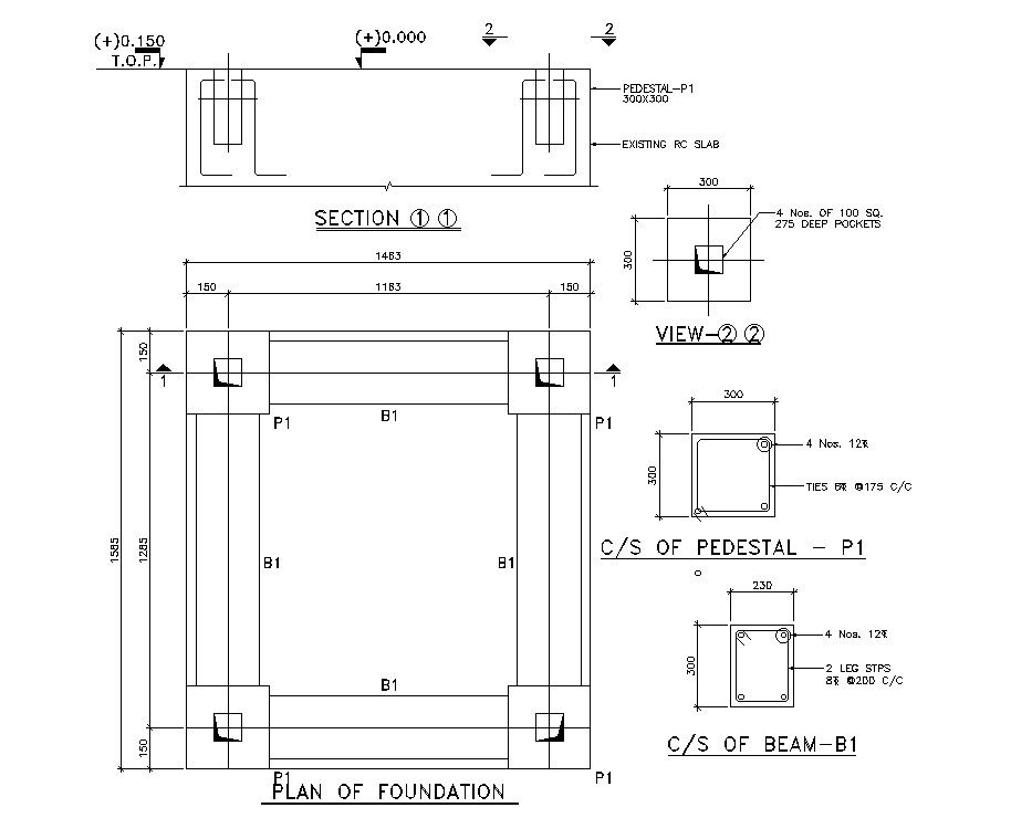 The foundation plan detail stated in this AutoCAD drawing file.Download this 2d Auto-CAD drawing file.