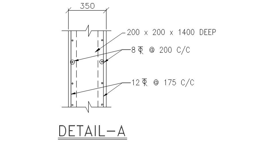 Reinforcement detail presented in this autocad drawing file. 350 size of this column detail consists of 8 dia 200 c/c and 12 dia 175 c/c in this cad file. section detail given with dimensions and naming detail. this can be used by architects and engineer. download this 2d autocad drawing.
