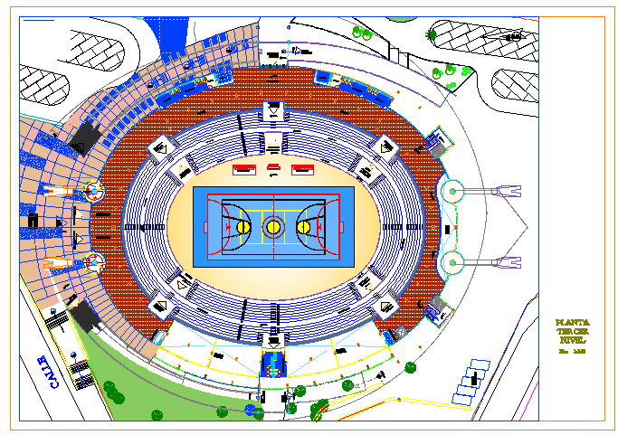 This is a Terrace plan of Sport center design drawing on architectural based auto cad drawing in this file.