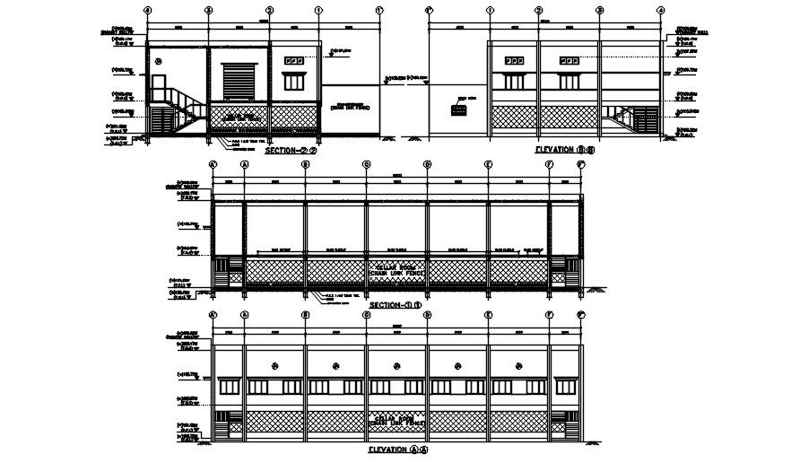 Elevation detail of bunglow defined in this AutoCAD drawing file. section detail also is given staircase detail and door window detail with dimensions and naming detail. this can be used by architects and civil engineers. Download this 2d AutoCAD drawing file.