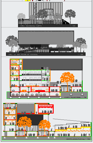 This is a Elevation design of High rise building design drawing with east side, West side, North side, South side elevation in this auto cad design drawing.